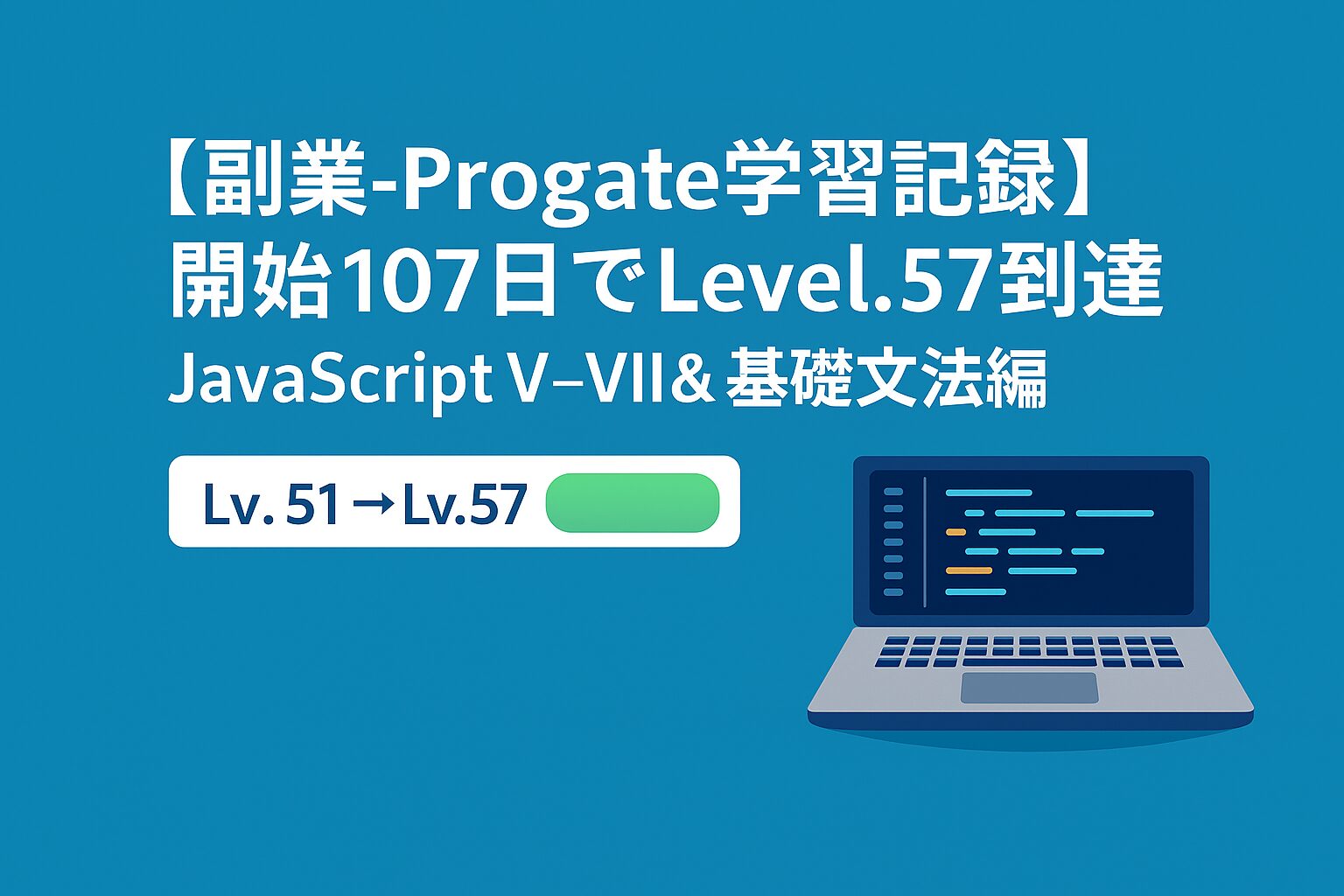 ▶ 【副業-Progate学習記録】開始92日でLevel.51到達|JavaScript IVを完走してVへステップアップ!