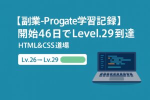 ▶ 【副業-Progate学習記録】開始46日でLevel.29到達|HTML&CSS道場と復習の大切さ