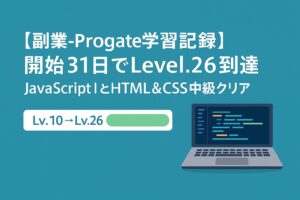 ▶ 【副業-Progate学習記録】開始31日でLevel.26到達|JavaScript初級とHTML&CSS中級をクリア