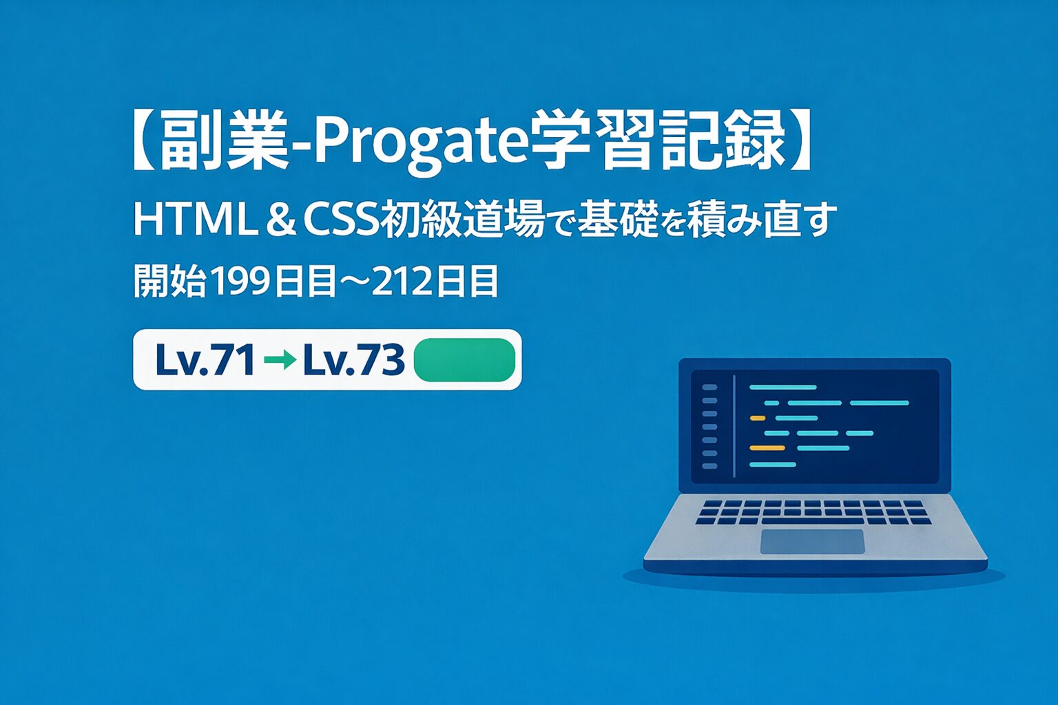 ▶ 【Progate学習記録】開始185日目〜198日目|Lv.68→71・HTML & CSS中級編でリズムを取り戻した半月